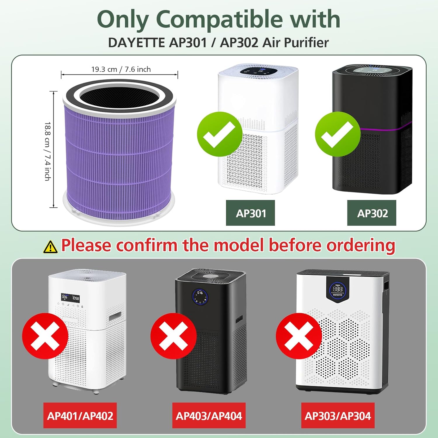 | Compatible Devices | ONLY for Dayette AP301 AP302 air purifier |