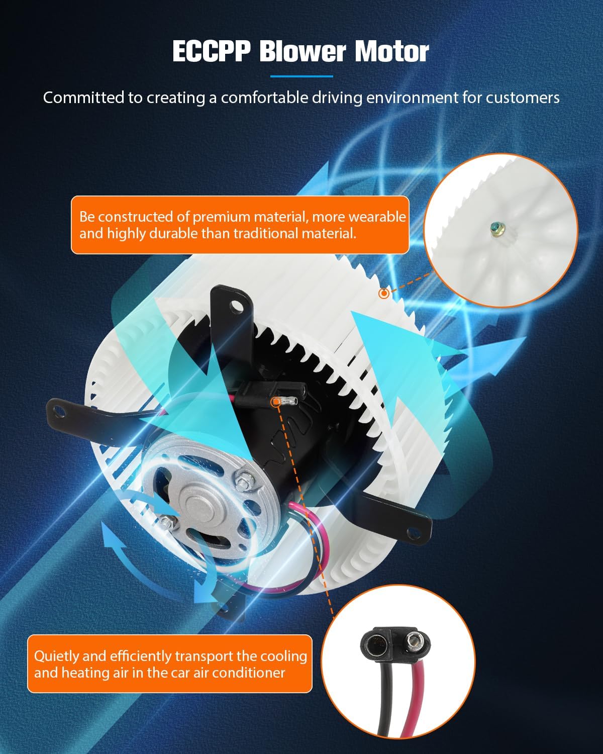 • Function of The Replacement Blower Motor: Quickly restore fresh air in the car. Rotor automatically winding to ensure the consistency of the electrical performance of the product. 100% checking and correct the dynamic unbalance of rotor and wheel