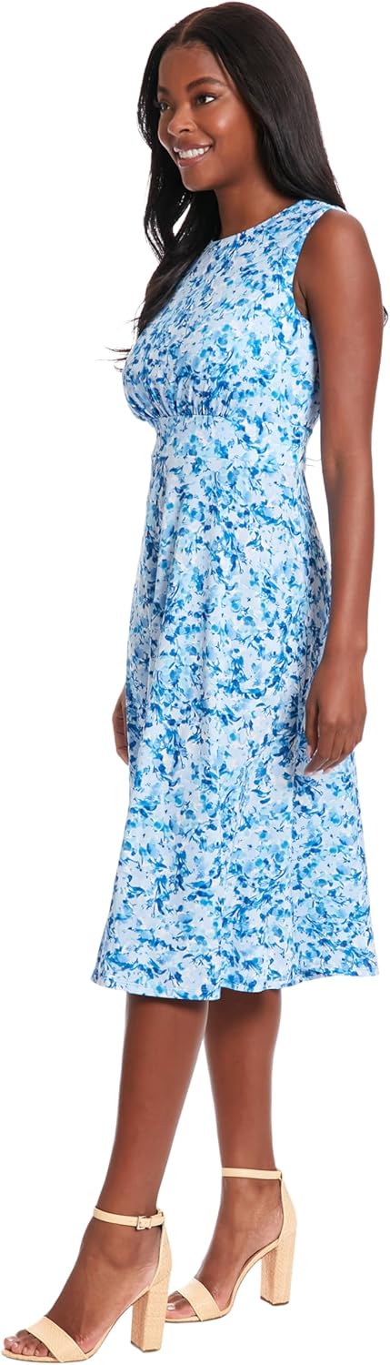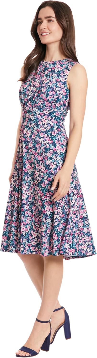 Discover the elegant charm of the London Times Kirby dress. This sleeveless A-line silhouette features a beautiful floral pattern and a jewel neckline for a timeless look.