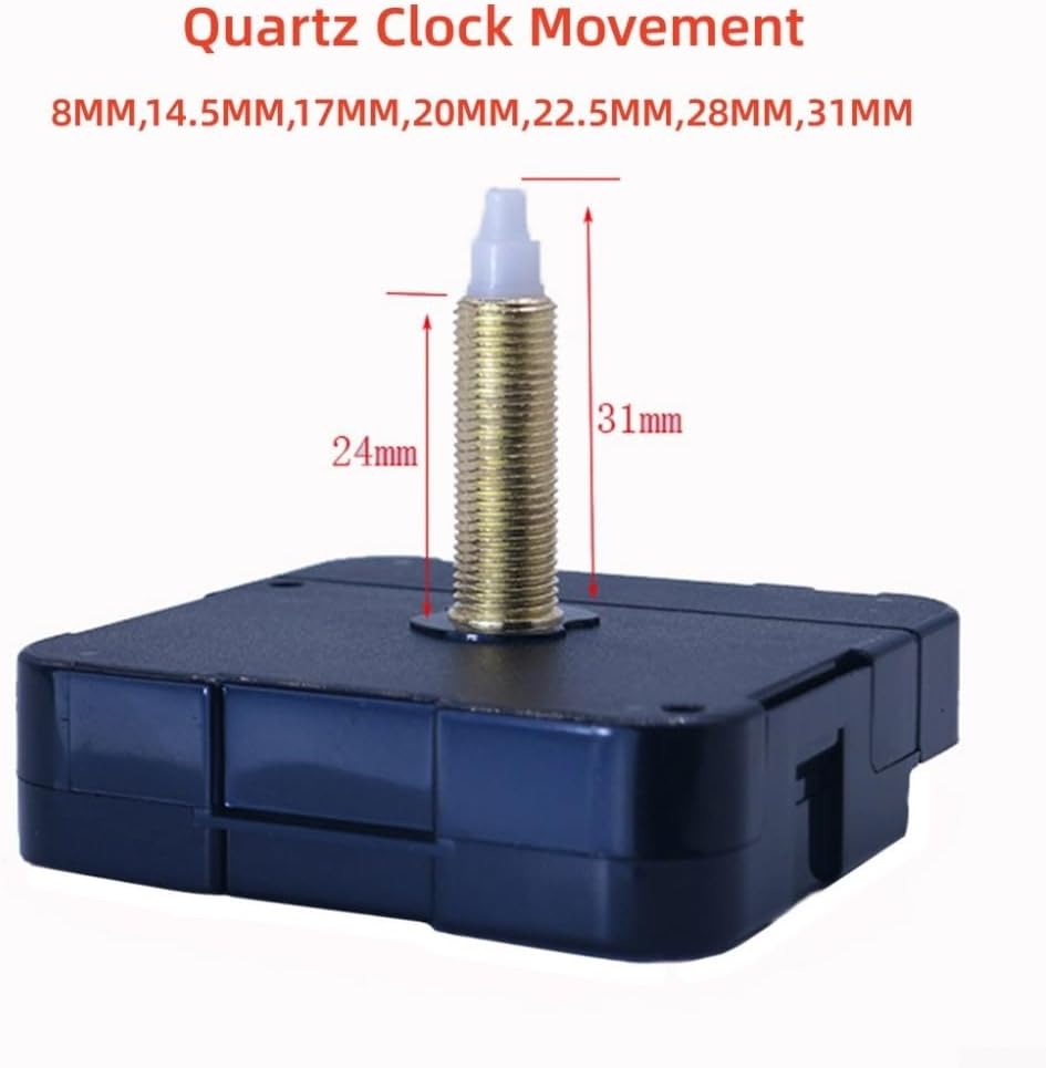 Product description Features:and .Good clock replacement.Simple style clock movement,Simple design, easy to use. Wide application: You are enable to use it to repair, replace or make a home clock; Applicable to cross-stitch, three-dimensional embroidery, desk clock, craft home clock, frame-less draw clock, . Perfect DIY clock kit, clock accessories, clock parts accessories, quartz mechanism for clock, silent tools.Specifications:Working Voltage: 1.3V~1.7VWorking current: Less than 130μATime Accuracy: Monthly±30 secondsSecond Hand Torque:>0.6(gf- cm)Minute Torque:>30(gr- cm)Working Temperature:-10°C~50°Cfor Crystal Oscillator Frequency: 32.768KHzTime: 3 pointer 12 hourSize: 56*56*16.3mmMaterial: Plastic, metalColor: BlackSpindle: 8mm,14.5mm,17mm,20mm,22.5mm,28mm,31mmPackage includes:1 x Clock Mechanism Manufacturer Contact Information no
