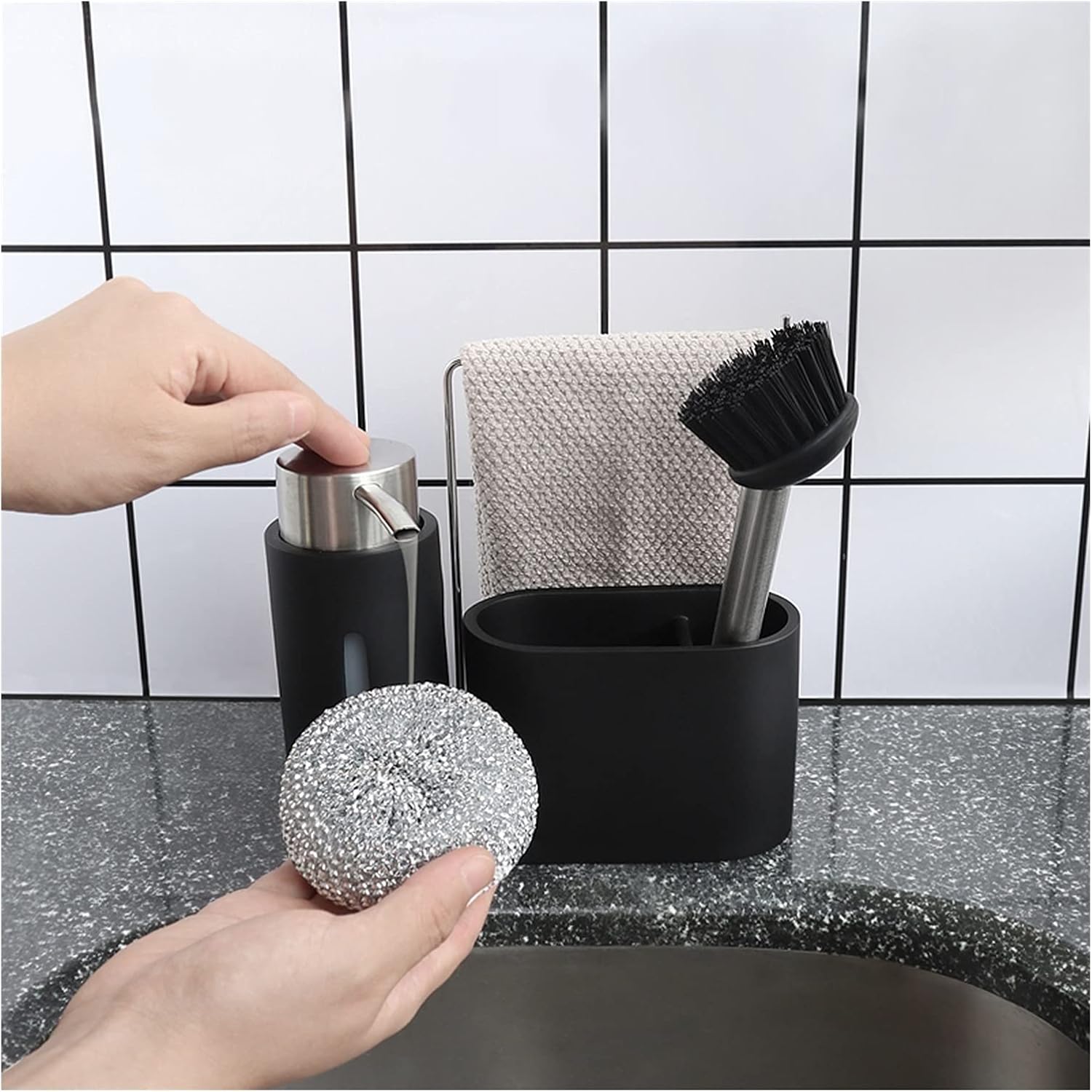 Product Name:Soap dispenser setProduct Color:BlackProduct Packaging:A set of soap dispenser (four-piece: base + soap dispenser + steel wire ball + brush)Prompt:1. Please check the size and color before buying.2. Except for the soap dispenser set shown in the picture, no other items are included.3. Please note that different monitors may cause slight color differences, please understand.4. Due to manual measurement, a small amount of error will occur. Please refer to the actual product, thank you.5. Our shop has many styles and colors, you can check in my shop.6. Welcome your sharing and feedback so that we can provide you with better products and services.Whether you need a kitchen soap dispenser or a stylish accessory for your bathroom décor, this soap dispenser is the perfect choice!