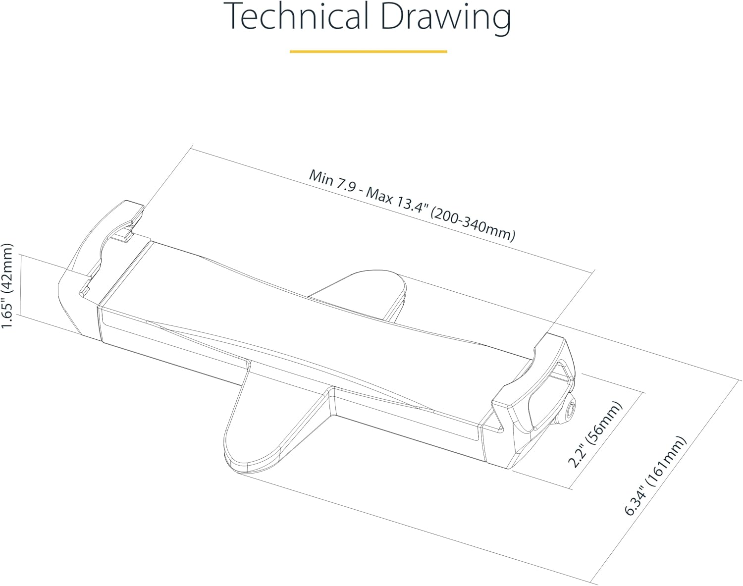 Attach a tablet to a VESA-compatible monitor arm, using this VESA mount adapter for tablets. The adapter is easy to install into your monitor arm or stand, and it supports most tablets of different brands with display sizes between 7.9 to 12.5 in. The spring-loaded clamp offers range of 7.9 to 13.3 in (200 to 340 mm) and can hold tablets up to 0.47 in (12 mm) thick and up to 4.4 lb (2 kg). VESA Mounting for Ergonomics Attach a tablet to this adapter and secure it to a VESA-compatible (75x75 / 100x100 mm) single monitor mount for use in POS, hospitality, room/storage control, and retail applications. Add a display to an existing setup by attaching this adapter to an available VESA monitor mount or arm. NOTE : The VESA mounting point must support rotation. Other adjustments may be possible depending on the capabilities of the VESA mounting point/monitor mount. Lock and Secure a Tablet The VESA tablet mount features anti-theft measures that can deter the theft of the attached tablet. These theft prevention features include anti-tamper mounting screws and lockable tablet clamps. Locking the clamp is optional. Keys and tools are included. Quick and Easy Installation The clever design does not block the ports, front-facing camera, or buttons, allowing users to use all the tablet's features (remove any protective cases from the tablet). The 0.7 lb (0.35 kg) weighted plate can be added to the tablet mount, to ensure optimal operation of spring-assisted/one-touch monitor arms. The tablet VESA mount is backed for 5 years, including free lifetime 24/5 multi-lingual technical assistance.